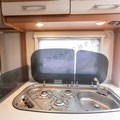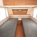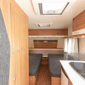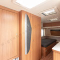 Accessori presenti: stufa Truma, WC Dometic a cassetta estraibile dall'esterno, kit doccia con boiler acqua calda, zanzariera sulla porta d'ingresso, 3 oblò di cui uno maxi, reti a doghe per i letti gemelli.